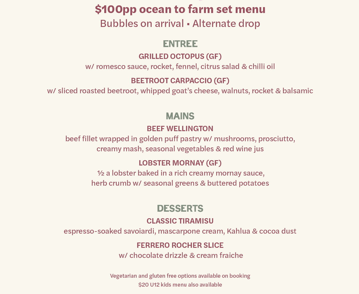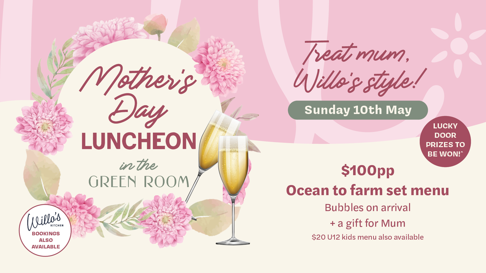 Regular Willo’s Kitchen bookings also available